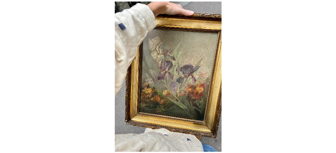 And finally, I bought the sweetest paintings this weekend. Three in total. I strolled. For hours upon hours upon hours on Sunday. My flâner, as this aimless and unhurried stroll is call here in France, took me to the Louver, over to the Opera, up by the Odéon (where I bought the three precious paintings at a pop-up market), through Jardin du Luxembourg, and over to see my Notre-Dame before I returned home. When I bought the painting, I asked the price first. The vendor turned it around and the sticker said $4500. Sticker shocked (literally) I started thanking him for his efforts of getting it down but that was too pricey for me. I mean… this is case in point. I do have champagne taste on a beer budget. But just as I was thanking him, he asked, “is this for you or for resale?” I told him it was for me. And then went on to share that I had just moved into a sweet apartment and I had her in mind to go above my mantel. The price must have been a reference or something. Because in a matter of seconds he said “what about $100?” EXUCSE ME??!! I didn’t hesitate. I reached in my pocket explaining that I had just bought my other two paintings before so all I had was $90. He took my cash and said he was just happy it was giong in my home. He had loved that painting too and hadn’t seen anyone light up as I had when I saw it. Who knows if $4500 was real (could NOT have been) but I just loved that I now have this sweet moment to tie to the purchase of my first painting in Paris. What a prized moment and token to cary away.