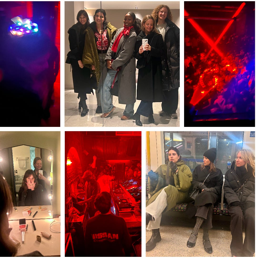 Back up in my room, I emailed something like 25 lawyers with my visa question and then changed into my club attire (aka, my daily outfit. All black) and bounced off to Erika’s room where Georgina was already there keeping her company. This is wild, so get ready, but the first time I met Georgina we realized that we had two dear friends in common. She is from the UK, her husband is from Mexico, and they have never lived in SC. I am from South Carolina and have never lived in the UK or Mexico – so not a lot of commonalities. And yet she worked with Ben and Kate Towill — two of my friends in Charleston who own Basic Kitchen and who basically put my business, BibOn (rip) on the map. Their restaurant sold my donuts faster than hotcakes (there’s a pun in there somewhere). So, Georgina is always a joy to see. I feel even more connected to her because of our Ben and Kate connection. She wasn’t coming with us to the club — instead, as we were cabbing home at 3am, deaf in the ears from the sound and still vibrating from all the laughter and dancing, she and her husband were cabbing to the airport to catch a 6am flight to Copenhagen. We teased her that given the time we left, they could have joined us after all!!