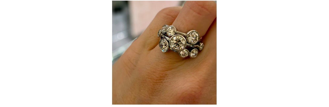 Lucky me, the shop staff could tell I had champagne taste, but little did they know, my budget was more beer than bubbly — so I was just window shopping with my eyes. Anyway, I immediately exposed my bare wrist to Simon — Yes, that was the shop seller’s actual name. Can you even handle? — and he wrapped my arm in diamonds. Sigh GORGEOUS. But the piece that really caught my eye? The millennium ring. He said it was his best-seller, and I could see why. The diamonds looked like they came straight from a meteor shower. I tried the classic version first, then said, “Oh, Simon, I have to try that one too.” He laughed as he slid the larger diamond ring onto my finger. It fit like a glove and sang a sweet pricey tune of $75,000.