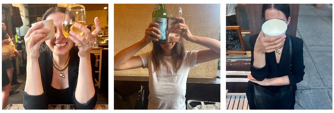 She makes me laugh so hard and has a way of seeing the world that is clear and easy. My tank… filled! (She also hates for her picture to be taken. So we improvised and giggled more as she lifted her sake and wine, and I lifted my still and sparkling H2O over our smeyes.)